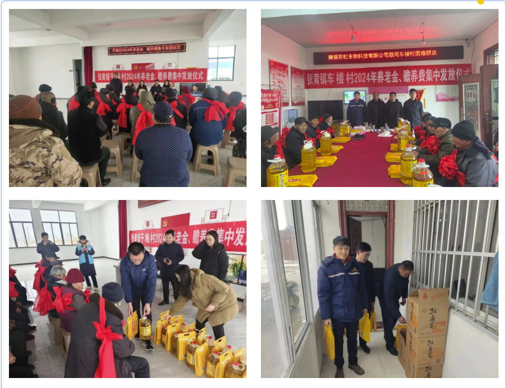魚臺(tái)是儒家“孝賢文化”的特色文化區(qū)域,素有孝賢故里之美譽(yù)。為弘揚(yáng)中華民族尊老、敬老、愛老、助老的傳統(tǒng)美德,2月1日,在新春佳節(jié)來臨之際,康盛集團(tuán)黨支部書記閆偉、工會(huì)主席孟依凡及濟(jì)寧惠達(dá)投資有限公司職工代表,對(duì)張黃鎮(zhèn)車樓村、于梅村及王莊村的高齡老人開展走訪慰問,并參加各村養(yǎng)老金、贍養(yǎng)費(fèi)集中發(fā)放儀式。