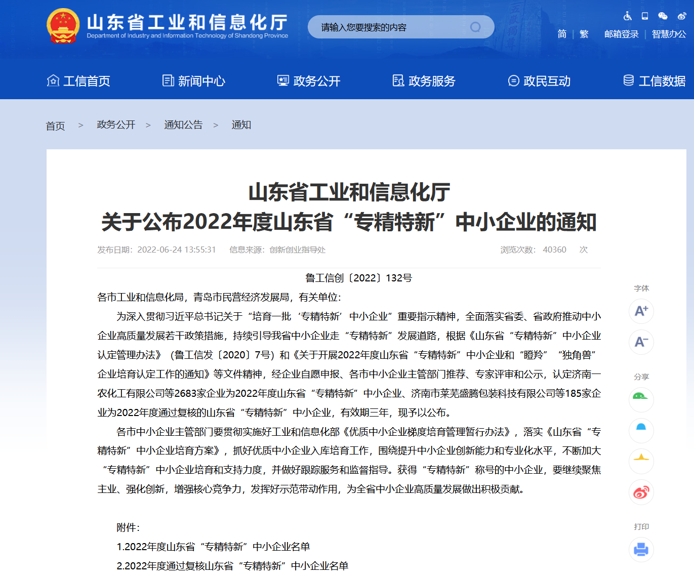 此次獲得省級(jí)“專精特新”中小企業(yè)榮譽(yù)稱號(hào),是山東省及濟(jì)寧市政府對(duì)我司兩子公司專業(yè)能力、創(chuàng)新能力及技術(shù)能力的認(rèn)可和鼓勵(lì)。
